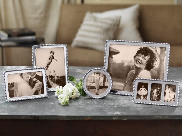 • A classic frame with a solid border, edged with beaded trim. Part of our signature String of Pearls collection, this frame fits an 8 x 10 inch photo.